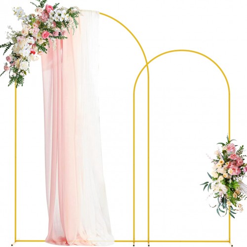 - 【Set of 2 Wedding Arch Stand】7.2x4ft (HxW) and 6×2.6ft (HxW) Metal wedding arch backdrop stand is made of quality anti-rust metal material, durable for indoor and outdoor use. Elegant door arch shape of this gold arch backdrop stand will give you a breathtaking decors for your event.