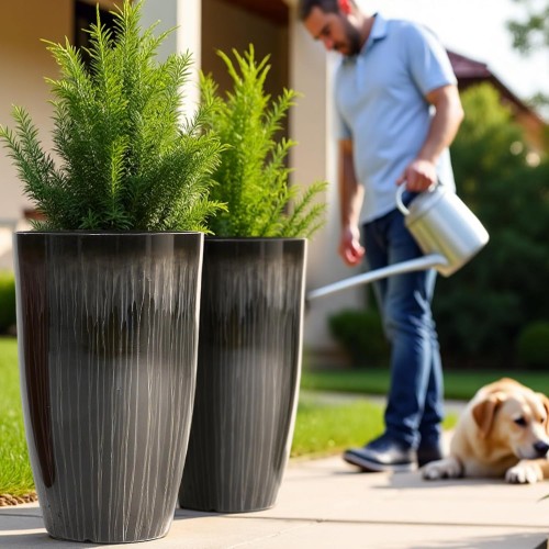 - DURABLE DESIGN: Made of weather-resistant plastic, these planters can withstand rain, sun and other outdoor elements while retaining their vibrant color and shine; These large plant pots are lightweight yet sturdy for indoor or outdoor decorative use