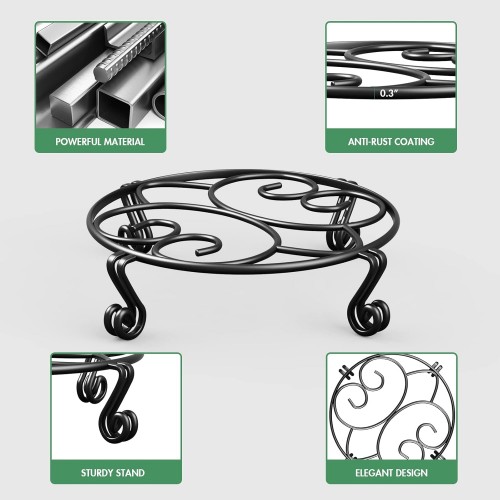 - 【CUTE AND BEAUTIFUL & MULTI-SCENARIO USE】: The round metal plant stand conformation is flowers pattern, cute and beautiful flower pot stand is a decoration itself, display your home beauty. This plant stand have three size ,they diameter are 9.4 Inches, 10.2 Inches, 11.8 Inches,they are suitable for anywhere, indoor and outdoor, garden, balcony, office, kitchen. You can place heavy plants, large potted trees, large vases, whiskey barrels, or heavy trash cans