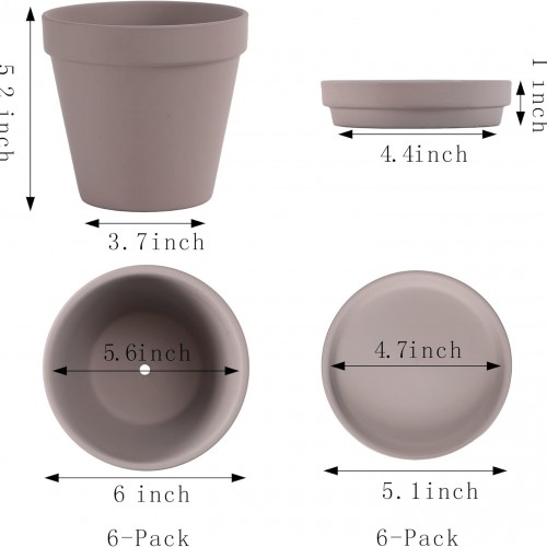 Yishang Large Terra Cotta Pots with Saucer- 4 Pack Large 6” Terra Cotta Plant Pot with Drainage Hole, Flower Pot with Tray, Terracotta Pot for Indoor Outdoor Plant(Grey)
