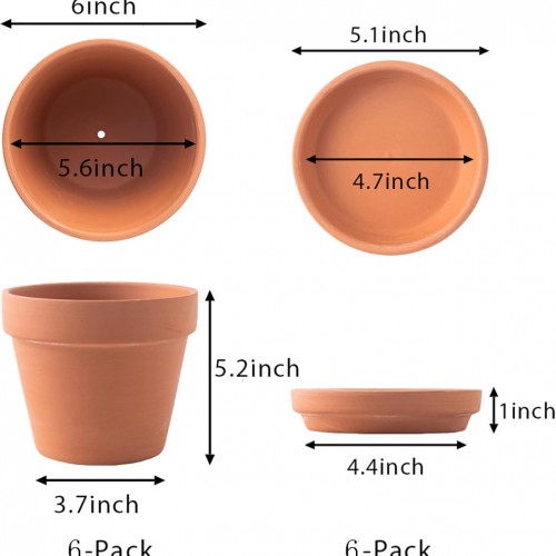Yishang Large Terra Cotta Pots with Saucer- 6 Pack Large 6” Terra Cotta Plant Pot with Drainage Hole, Flower Pot with Tray, Terracotta Pot for Indoor Outdoor Plant