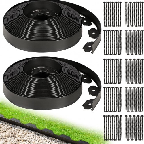 1.5 Inch Garden Edging Border 100FT, Plastic Edging for Landscaping with 90pcs Spikes