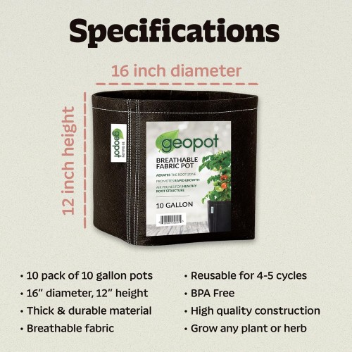 10 Gallon Grow Bags Planters for Outdoor Plants 5-Pack Plant Bags with Handles